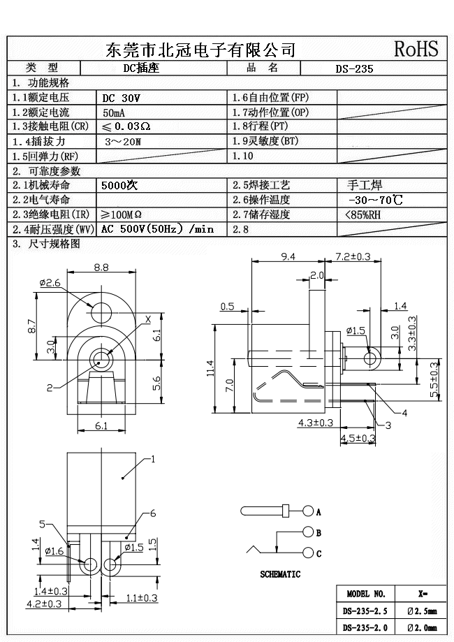 Typical Specifications 1. Rating : DC 30V 0.5A 2. Contact Resistance : 70?Max 3.Lnsulation Resistance: DC500V 1Minute 4.Operating Temperature Range: -25℃+80℃ 5.Ambient Humidity Used: ≤85%RH 6. Operating Force : 3-20N 7. Operating Life : 5,000Cycles