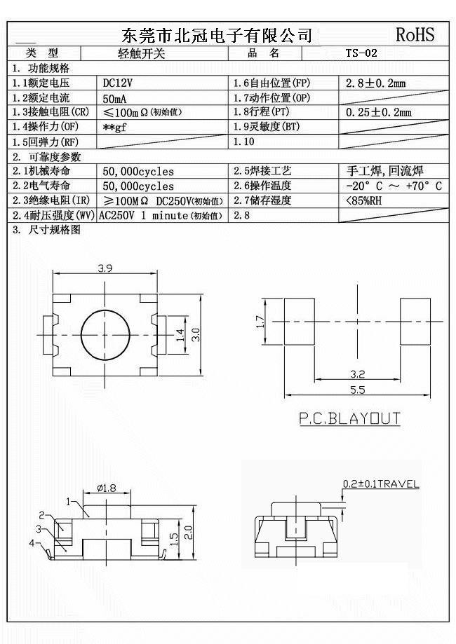 產(chǎn)品名稱:TS-02輕觸開關(guān)
