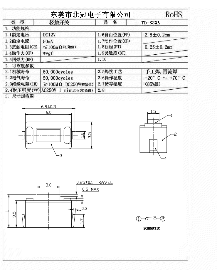 7.Travel:0.25±0.1mm