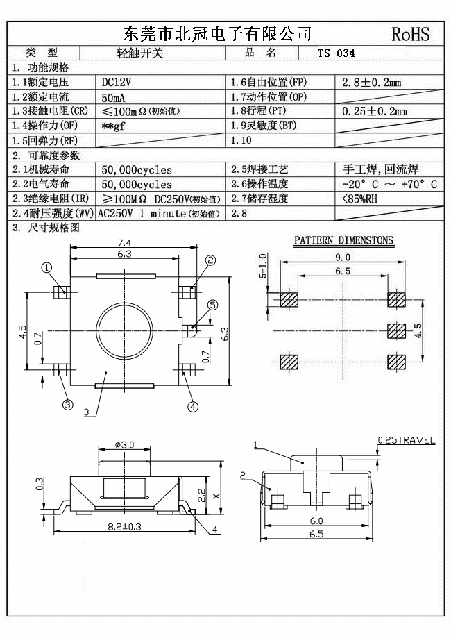 7.Travel:0.25±0.1mm