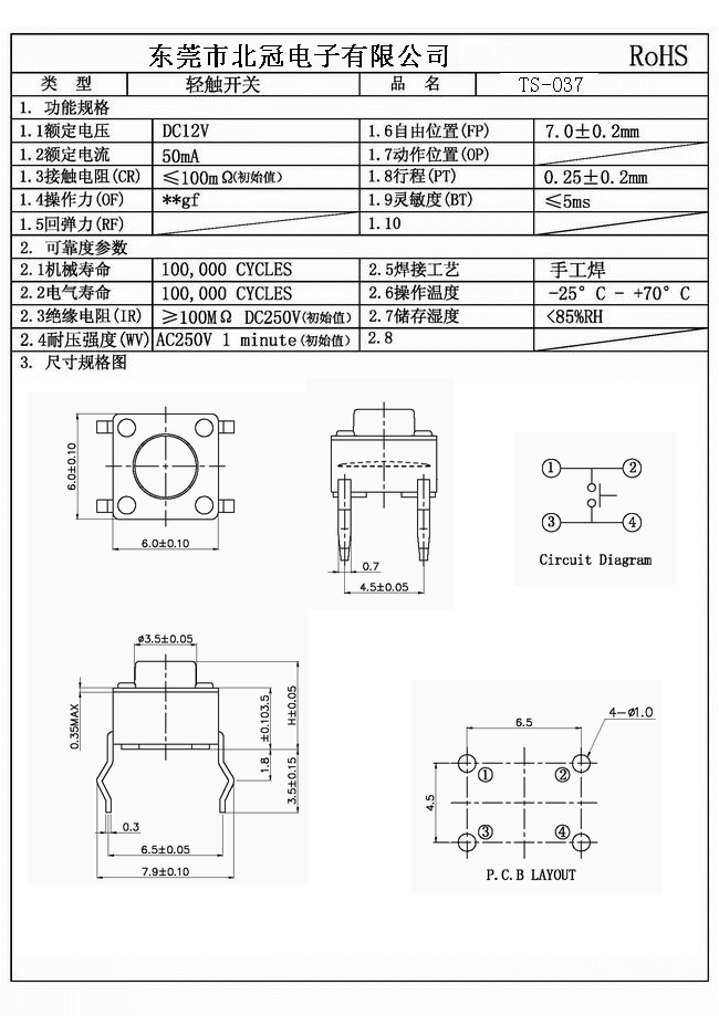 產(chǎn)品名稱(chēng):TS-037輕觸開(kāi)關(guān)
