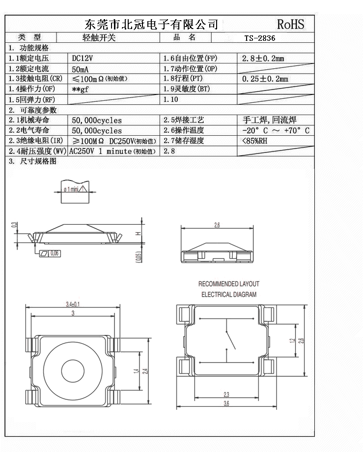 產(chǎn)品名稱:TS-2836輕觸開關(guān)