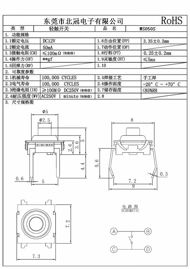 3.Lnsulation Resistance: ≥100mΩ DC250V