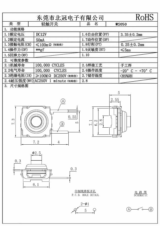 7.Travel:0.25±0.1mm