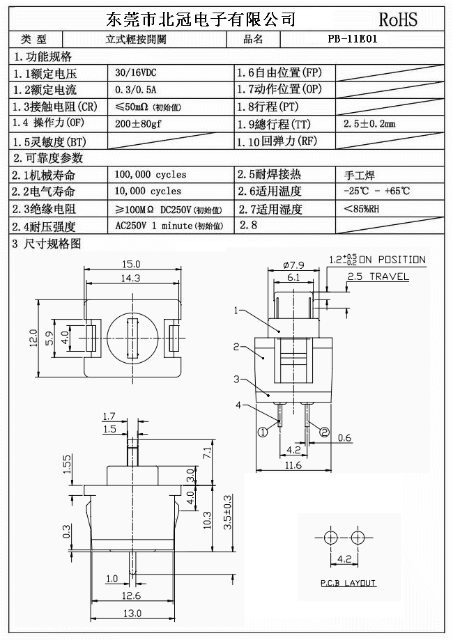 6.Operating Force : 180 ± 50 gf