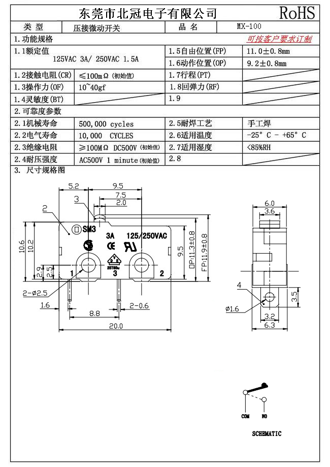 6.Mechanical Life: 100,000Cycles