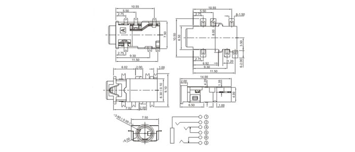 產(chǎn)品名稱:PJ-3106C 品名:3.5耳機插座 |