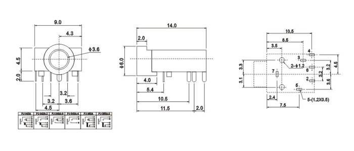 產(chǎn)品名稱:PJ-343A 品名:3.5耳機插座 |