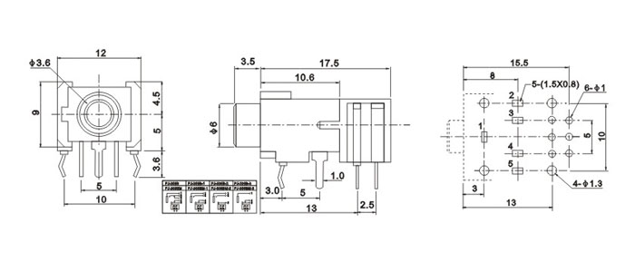 產(chǎn)品名稱:PJ-306BM 品名:3.5耳機(jī)插座 |