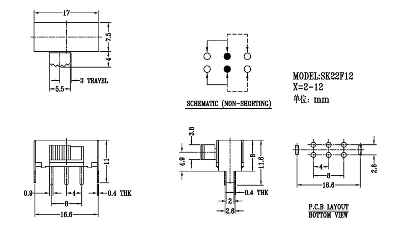 撥動開關(guān)主要技術(shù)參數(shù)/Slide Switch Main data