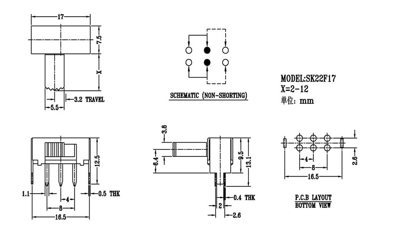 撥動開關(guān)主要技術(shù)參數(shù)/Slide Switch Main data