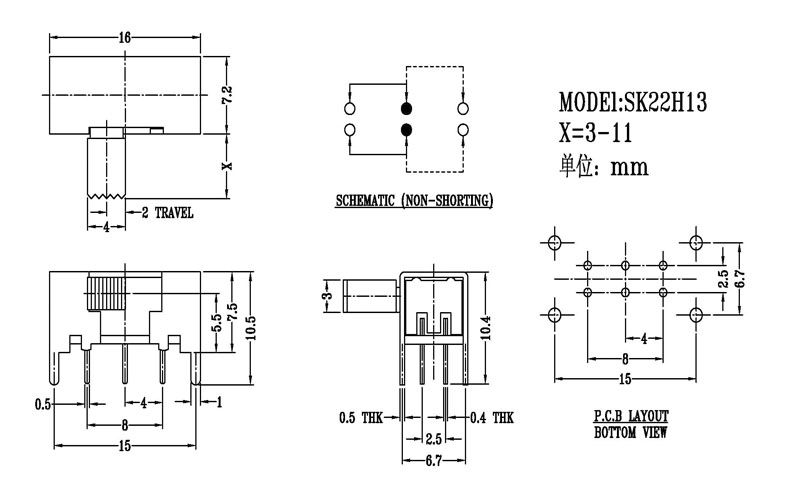 撥動(dòng)開關(guān)主要技術(shù)參數(shù)/Slide Switch Main data