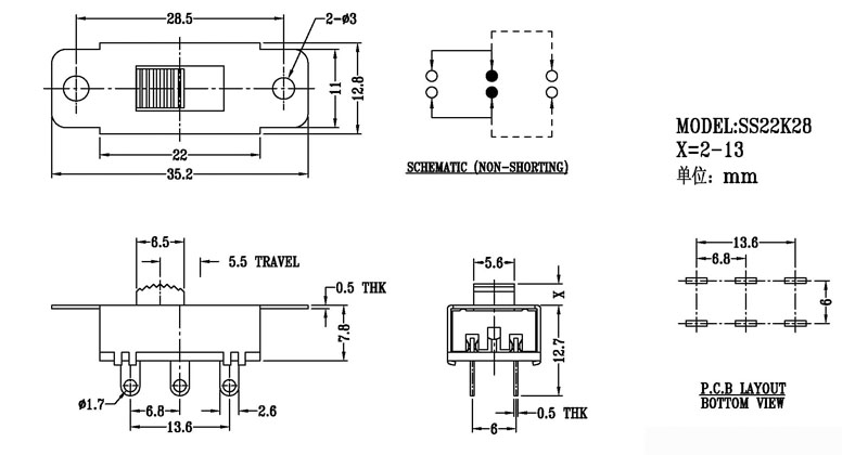 撥動開關(guān)主要技術(shù)參數(shù)/Slide Switch Main data