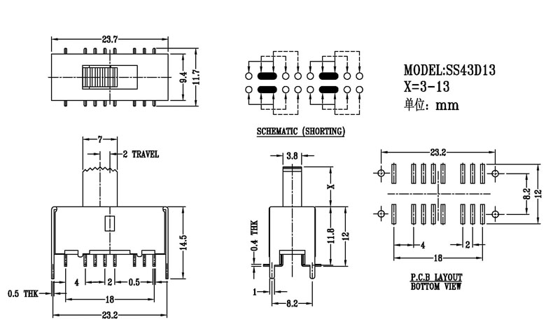 撥動開關(guān)主要技術(shù)參數(shù)/Slide Switch Main data