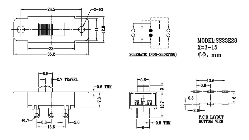 SS-23E28撥動(dòng)開關(guān)