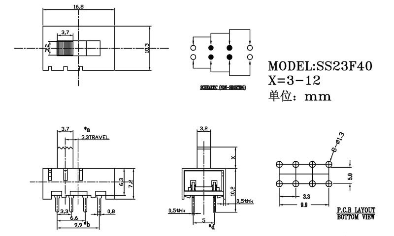 撥動開關主要技術參數(shù)/Slide Switch Main data