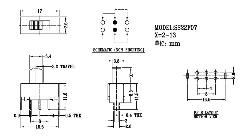 產品名稱:SS-22F07撥動開關